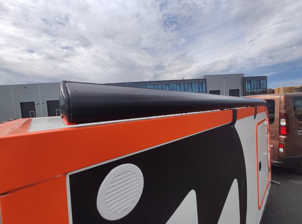 Kerghaagis, lukustatavad uksed (külg, tagumine), 4x mahalastavad seisujalad, põrkerauad taga, juhtmetoitel elektrisüsteem, päikesepaneeliga elekter, küttesüsteem, katuseluuk ja küljeaken, lukustatavad uksed, väljakäiv markiiskate, katusereelingud.